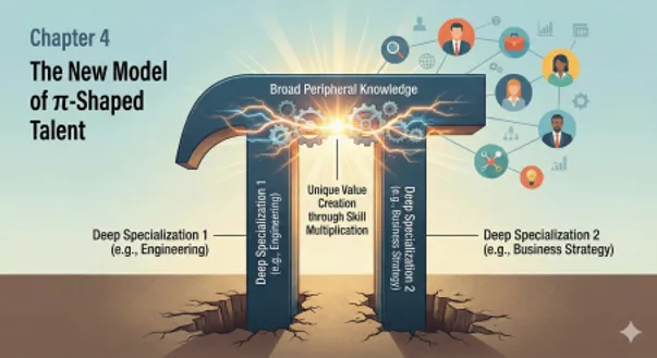 なぜπ字型が強いのか。答えは「スキルの掛け算」にあります。エンジニアリング×ビジネス戦略、デザイン×データサイエンス、法律×テクノロジー、IP×マーケティング。2つの専門性を組み合わせることで、それぞれ単独では生まれない独自の価値を創出できるのです。